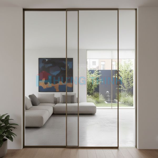 Cửa trượt slim 2 cánh 1 cánh trượt 1 cánh cố định SIÊU ÊM tại Đà Nẵng